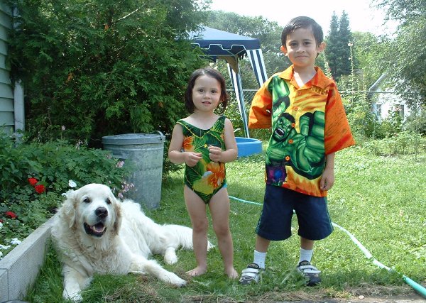 2003-AUG-20: Philip & Theresa & Shelby in front yard